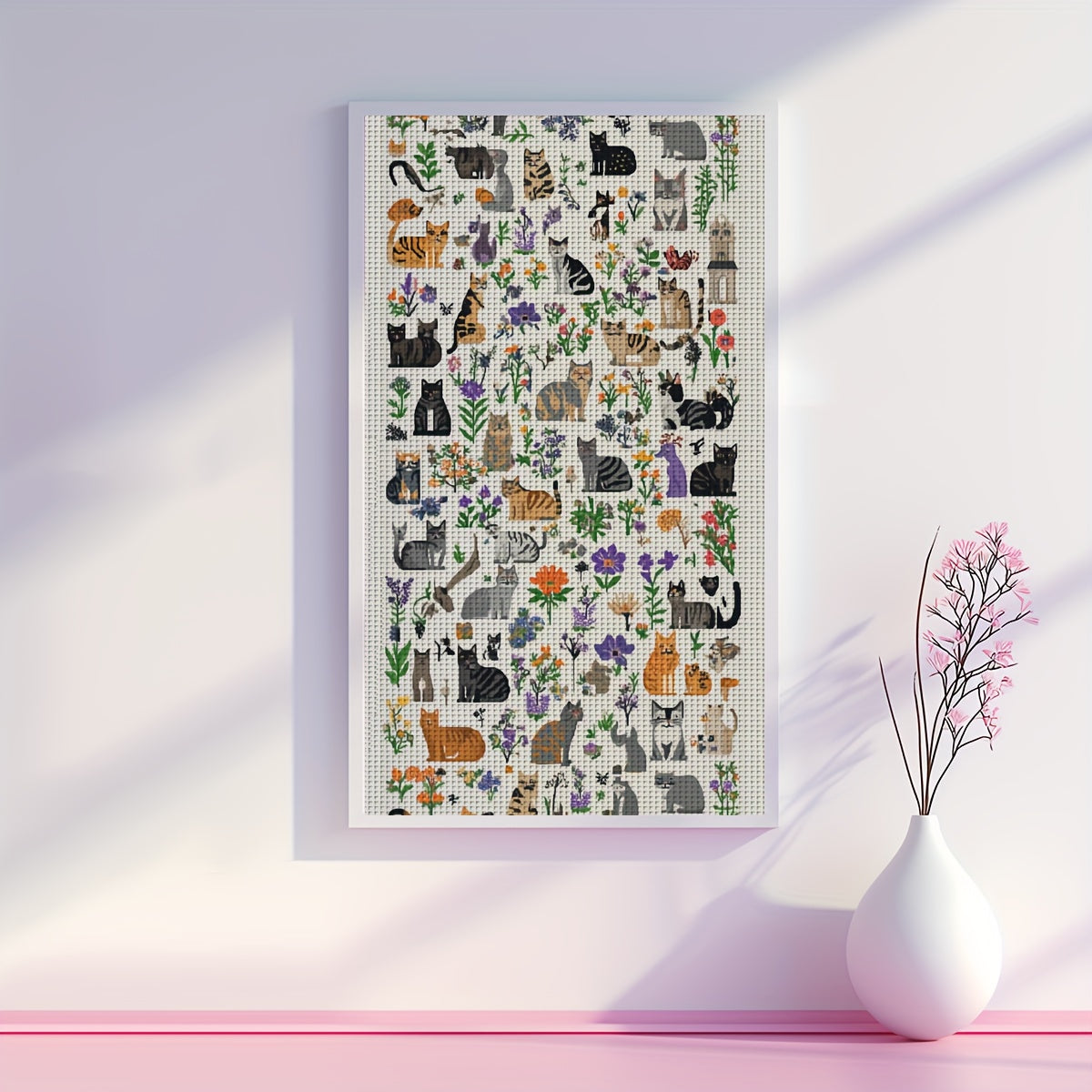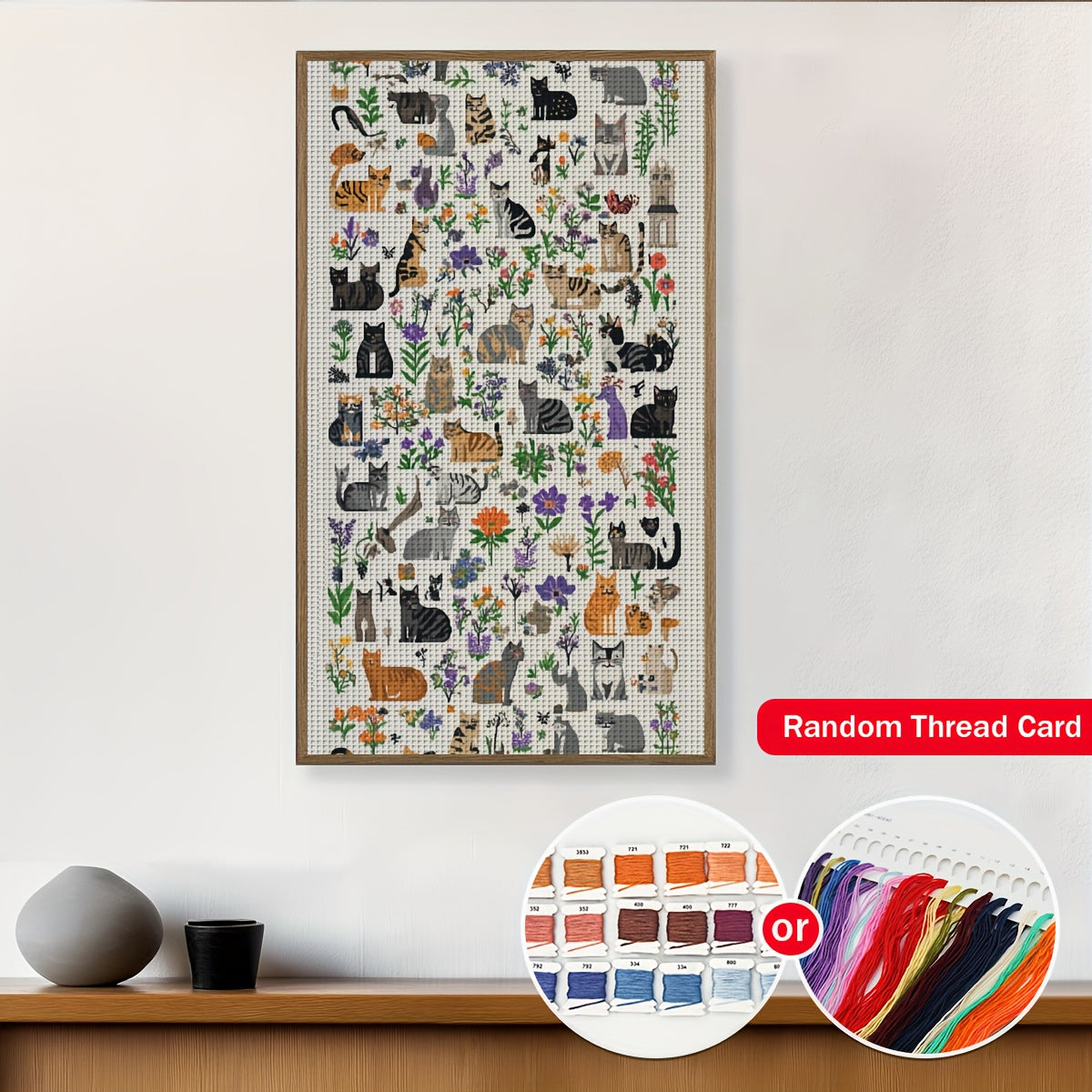 JOZYSH, 1pc, 40x70cm/15.7x27.6Inch, DIY Cross Stitch Kits, Embroidery Crafts Sets, Cats and Cats Army, Patterned Printed Cross Stitch Kits, Random Thread Board Cross Stitch Material Kits, Living Room Entrance Bedroom Decorati
