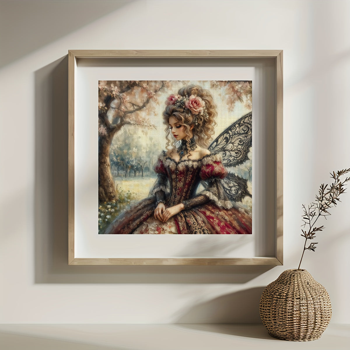 JOZYSH Elegant Lady with Butterfly Wings Cross Stitch Kit - DIY 11CT/14CT Embroidery Set, Unframed, Includes Patterned Fabric & Threads, Ideal for Living Room, Bedroom, or Entryway Decor, Home Decor Art|Ornate Dress|Intricate