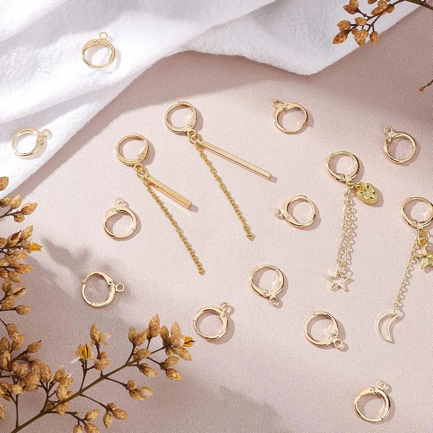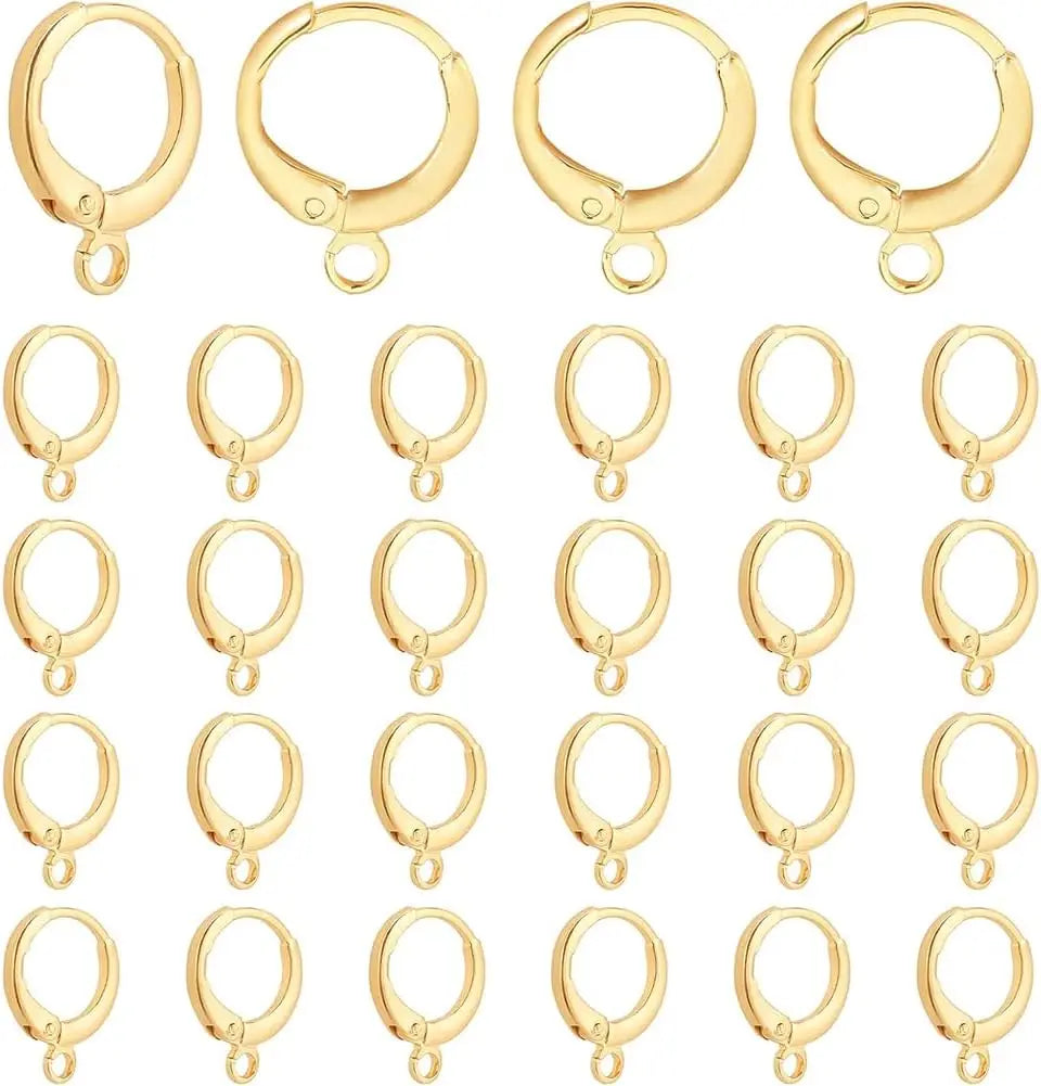 PandaHall 30pcs Earring Hooks Huggie Hoop Earring Findings 18K Gold Plated Lever Back