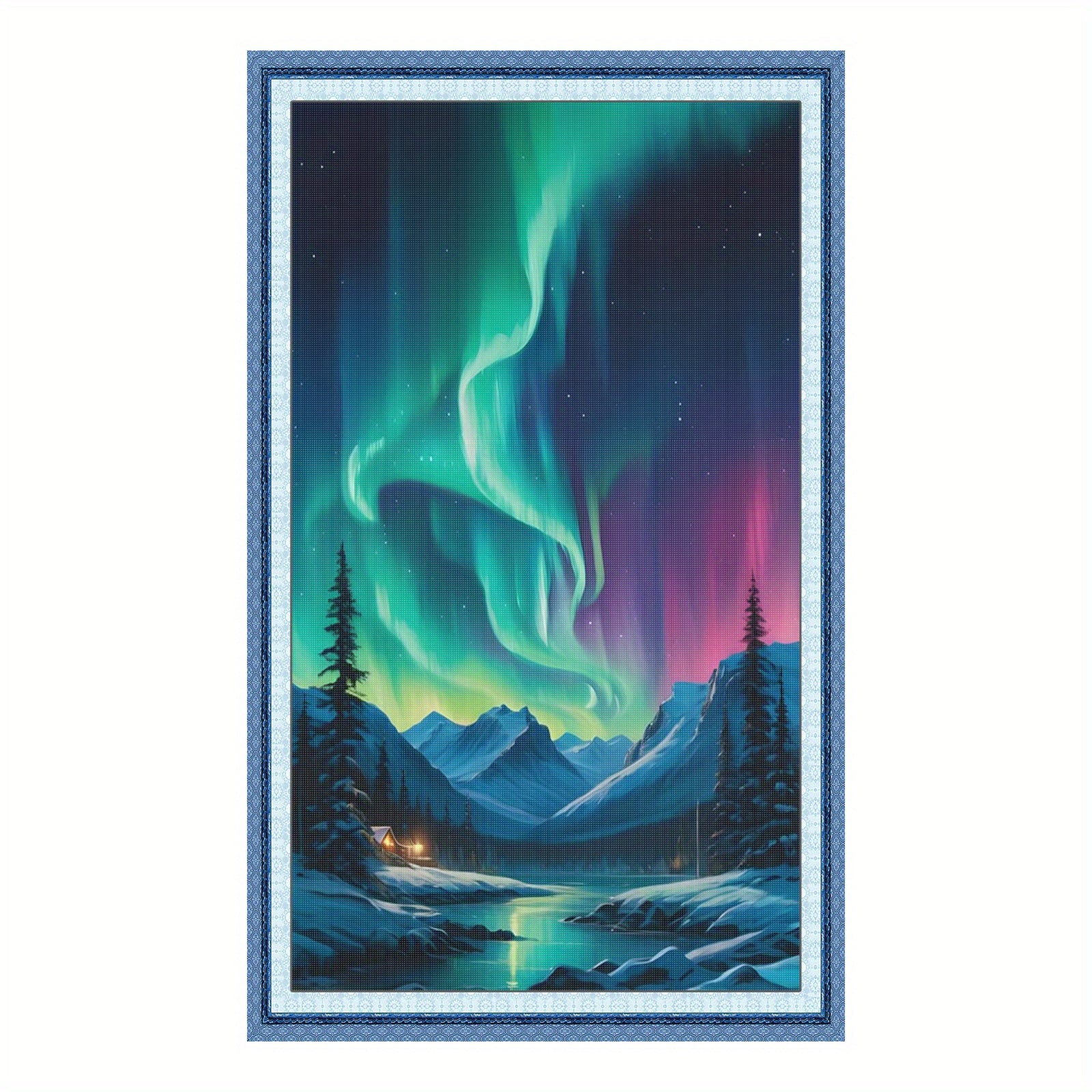 Stamped Cross Stitch Kits for Adults, Aurora Embroidery Kits for Beginners, 11CT Patterns, Counted Embroidery Needlepoint Kits Home Decor, 15.7 x 27.5 inch
