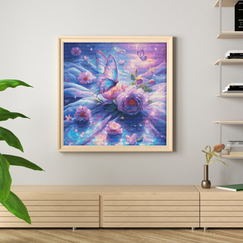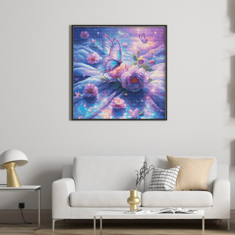 Stamped Cross Stitch Kits for Adults, Butterfly Embroidery Kits for Beginners, 14CT Patterns, Counted Embroidery Needlepoint Kits Home Decor, 29.5 x 29.5 inch