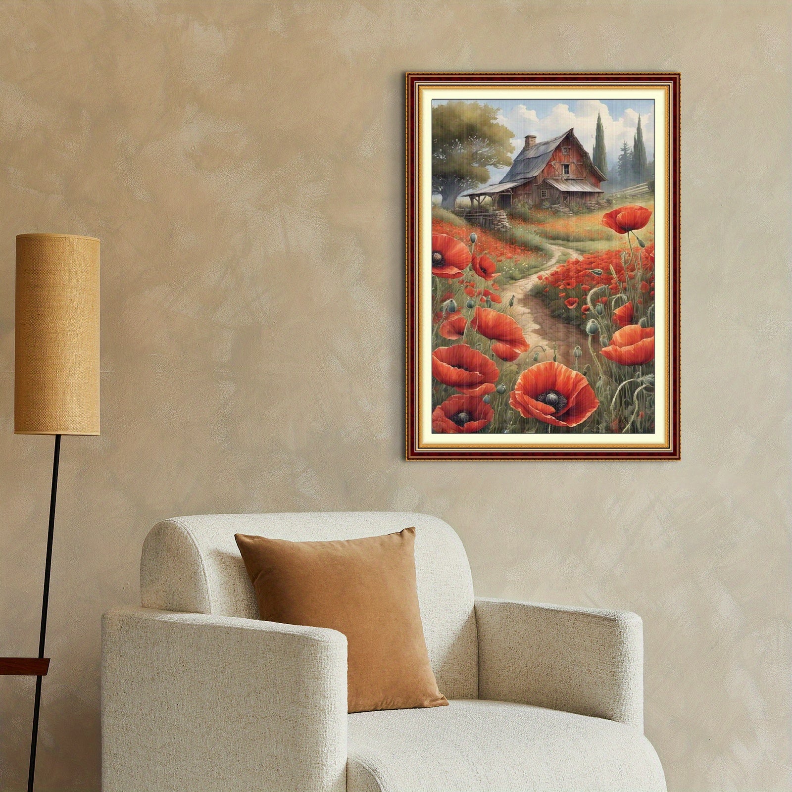 Stamped Cross Stitch Kits for Adults, Poppy Embroidery Kits for Beginners, 11CT Patterns, Counted Embroidery Needlepoint Kits Home Decor, 15.7 x 23.6 inch