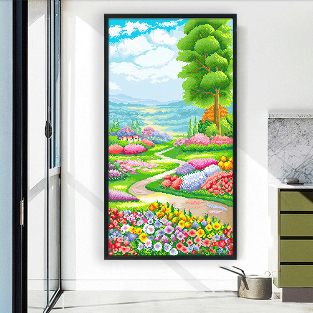Stamped Cross Stitch Kits for Adults, Secret Garden Embroidery Kits for Beginners, 11CT Patterns, Counted Embroidery Needlepoint Kits Home Decor, 19.69 x 35.43 inch