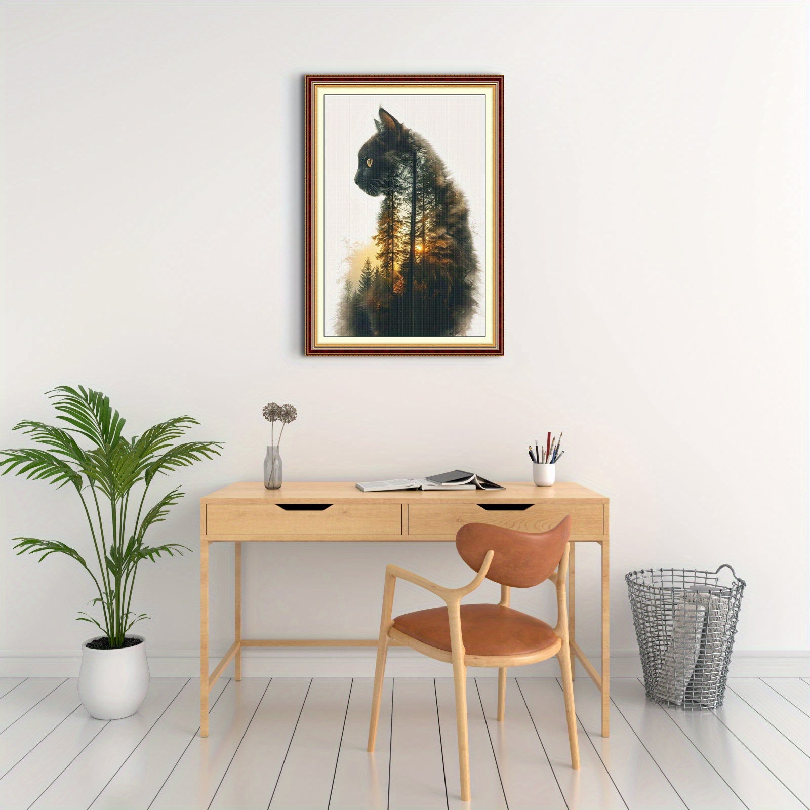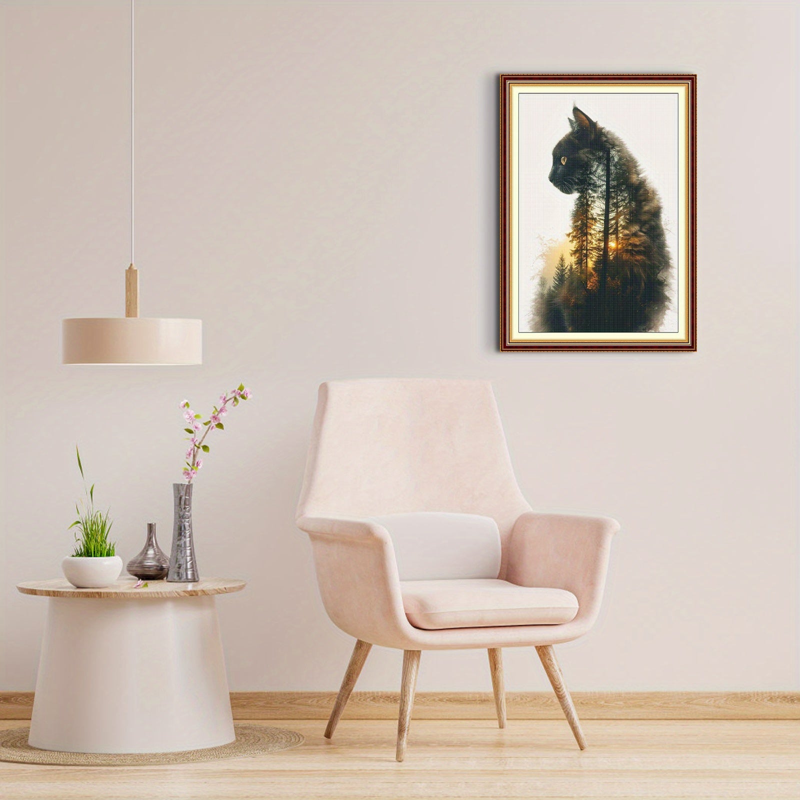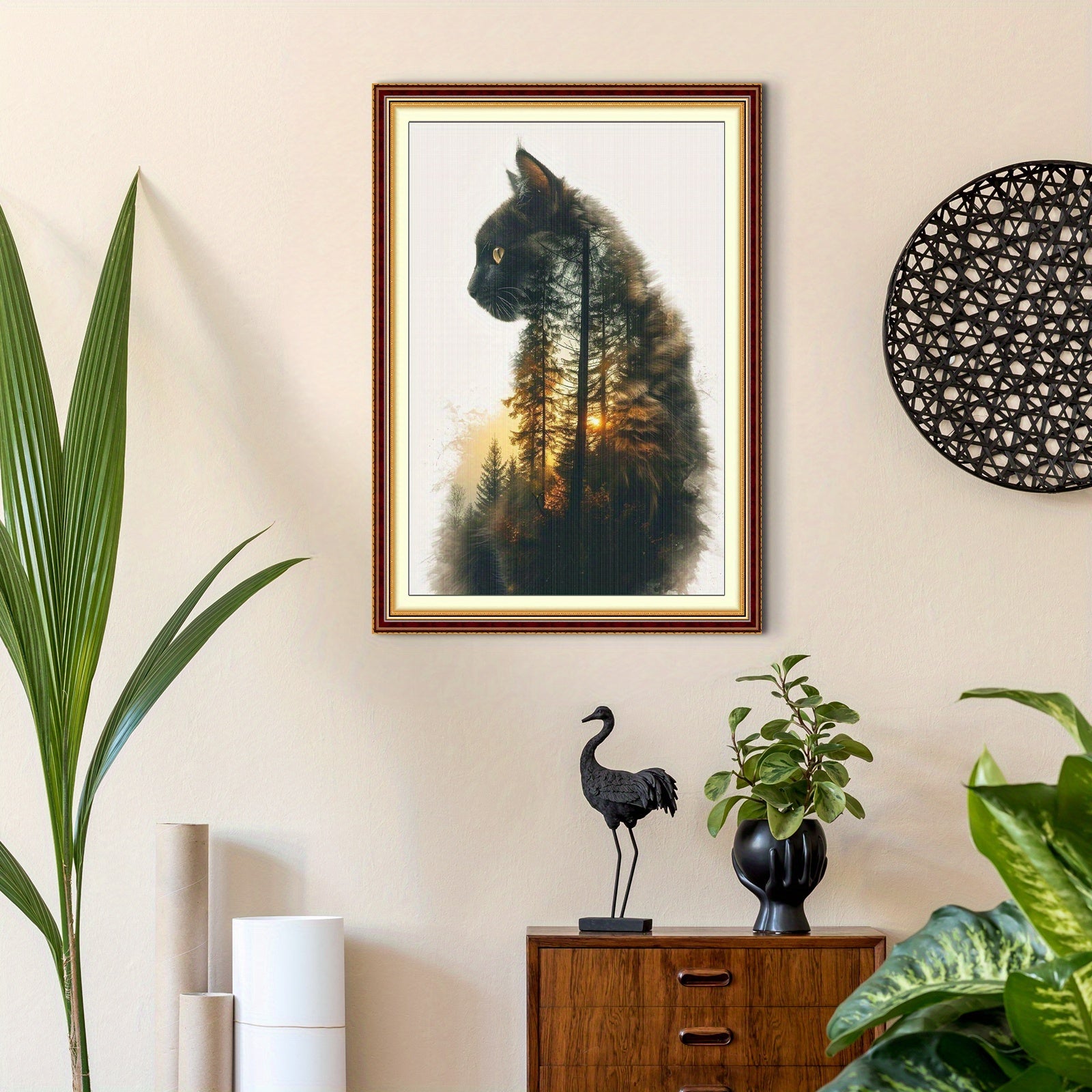 Stamped Cross Stitch Kits for Adults, Silhouette Cat Embroidery Kits for Beginners, 11CT Patterns, Counted Embroidery Needlepoint Kits Home Decor, 15.7 x 23.6 inch