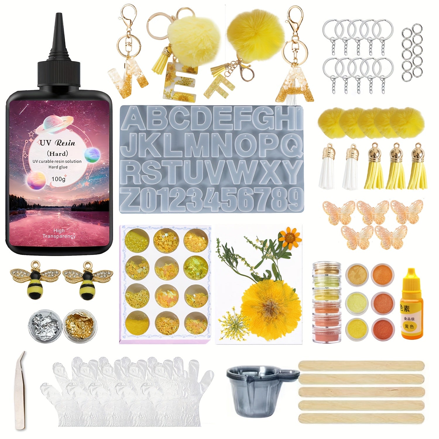 UV Resin Jewelry Making Kit for Beginners - 100g Clear Fast-Curing Resin with Silicone Molds & Dried Flowers | All-in-One Starter Pack (Measuring Cups, Gloves, Stir Sticks) | DIY Necklace Keychain Earrings Craft Supplies |Bub
