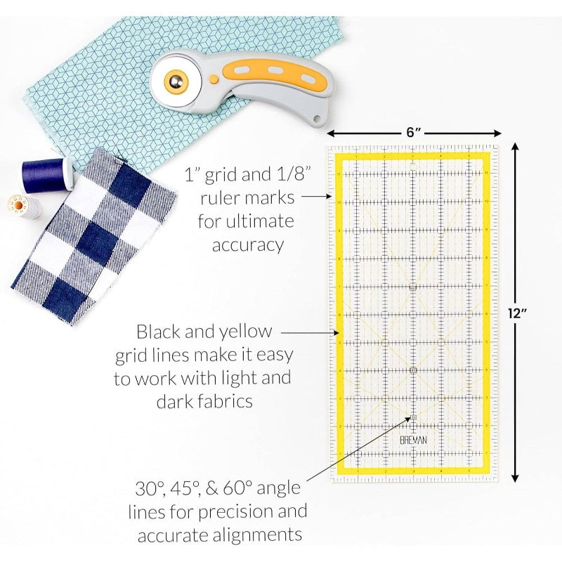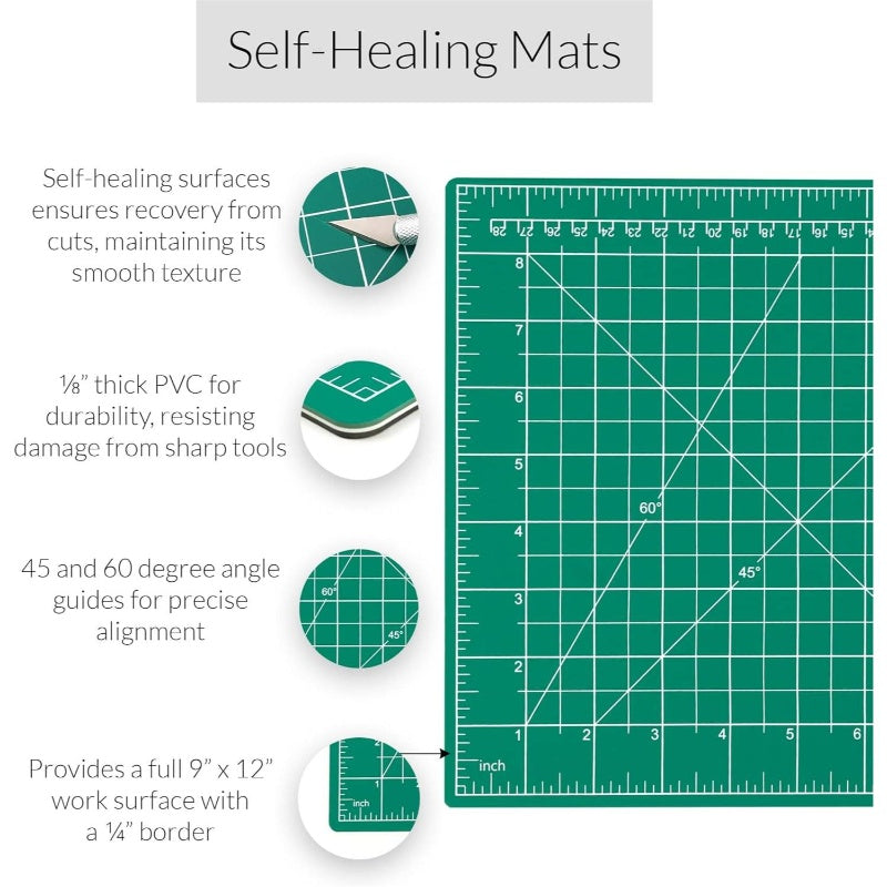 WA Self Healing Cutting Rotary Cutter Set with 5 Blades & 9x12 Fabric Cutting Mats - 45mm Rotary Cutter with 6x12 Acrylic Quilting Rulers - Heavy-Duty Crafting Kit for Fabric, Paper, Vinyl, Felt - Precision Cutting for Quilti