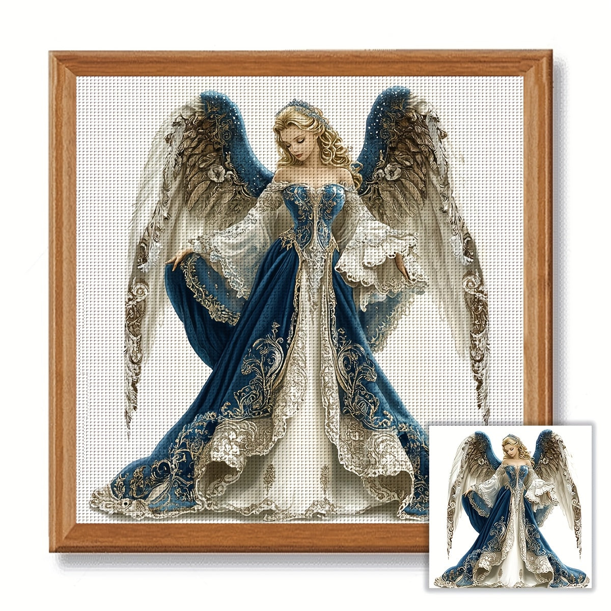 ZUOANLF 1 Set 40x40cm-15.7x15.7in Unframed 11CT/14CT Print Fabric Cross Stitch DIY Kit, Angel Series Patterns - Relaxing Adult Beginner Cross Stitch Set with Printed Fabric, Needle, Thread, Patterns & Instructions - Perfect f