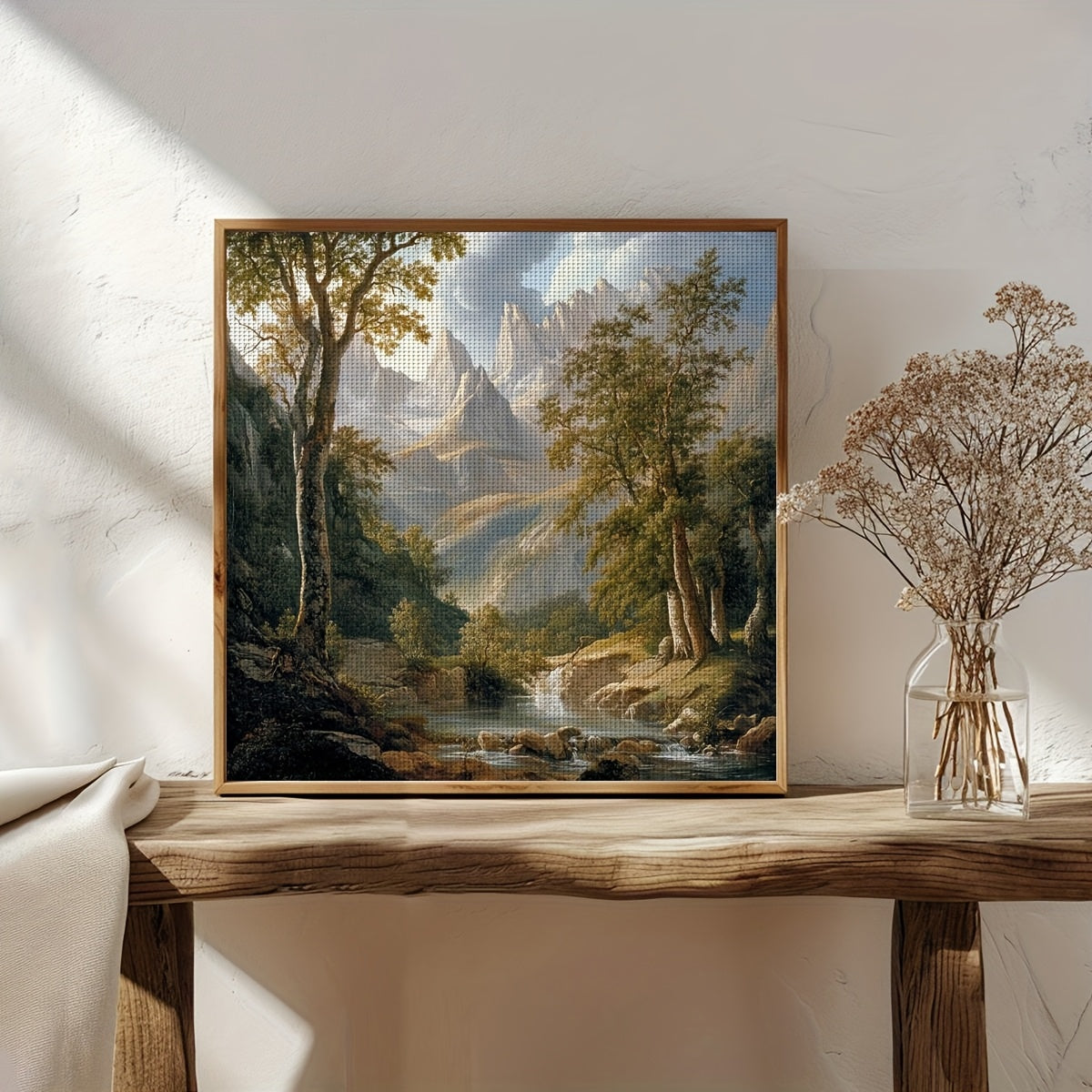 ZUOANLF 1pc 40x40cm/15.7x15.7in Mountain Landscape Cross Stitch DIY Kit - 11CT/14CT, Relaxing Adult Beginner Embroidery Set with Canvas, Needle, Thread, Patterns & Instructions - Ideal for Bedroom or Living Room Wall Decor, P