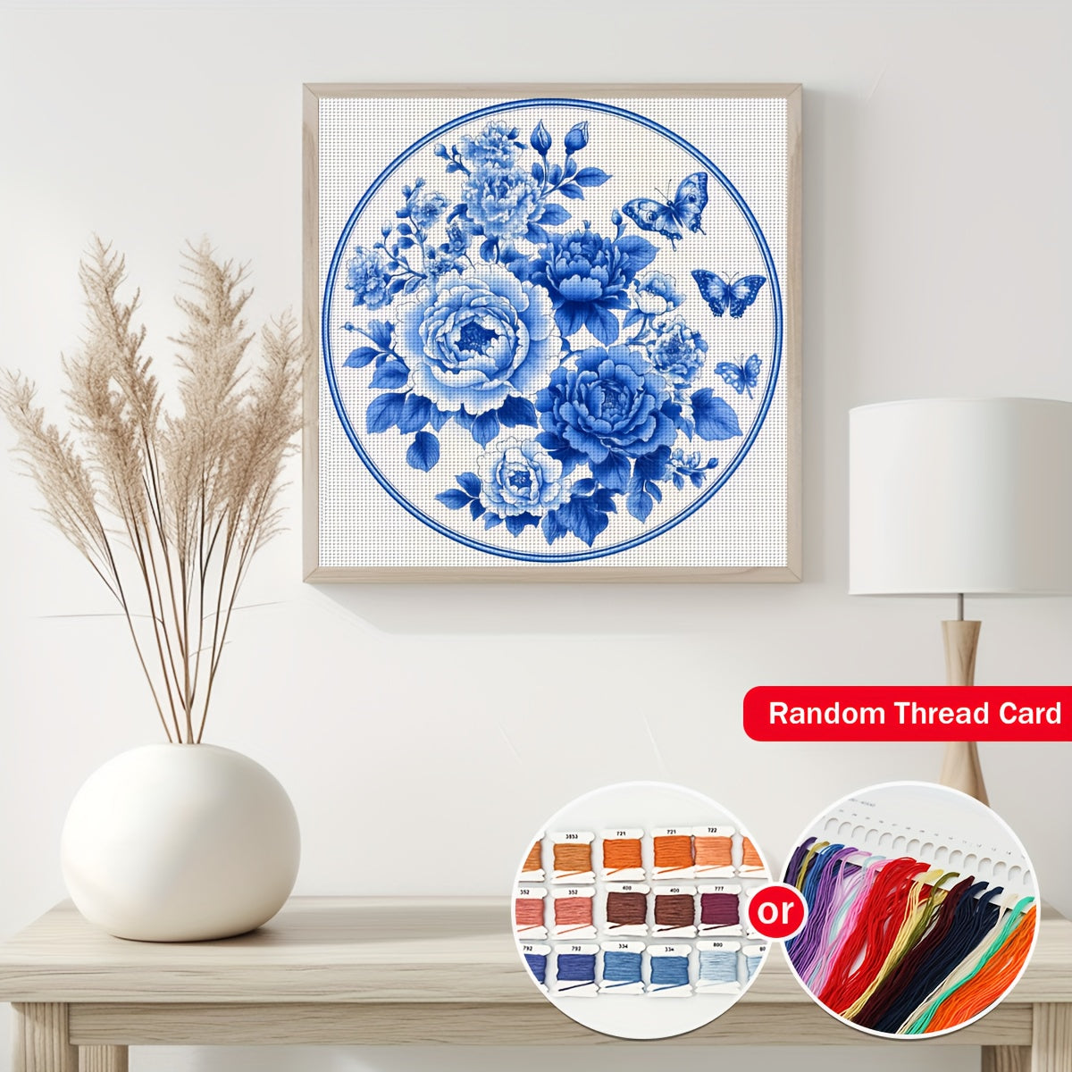 ZUOANLF 1set 40x40cm/15.7x15.7Inch DIY Cross Stitch Kit Frameless, Beautiful flowers, tamped cross stitch kits, Embroidery Set for Home Decor, Includes Patterned Fabric & Threads, Perfect for Living Room Entrance or Bedroom D