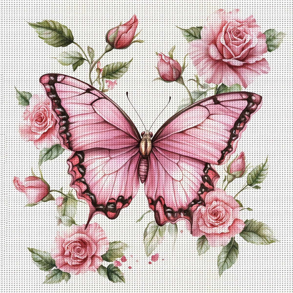 ZUOANLF 1set 40x40cm/15.7x15.7Inch DIY Cross Stitch Kit Frameless, Butterfly and flowers, stamped cross stitch kits, Embroidery Set for Home Decor, Includes Patterned Fabric & Threads, Perfect for Living Room Entrance or Bedr