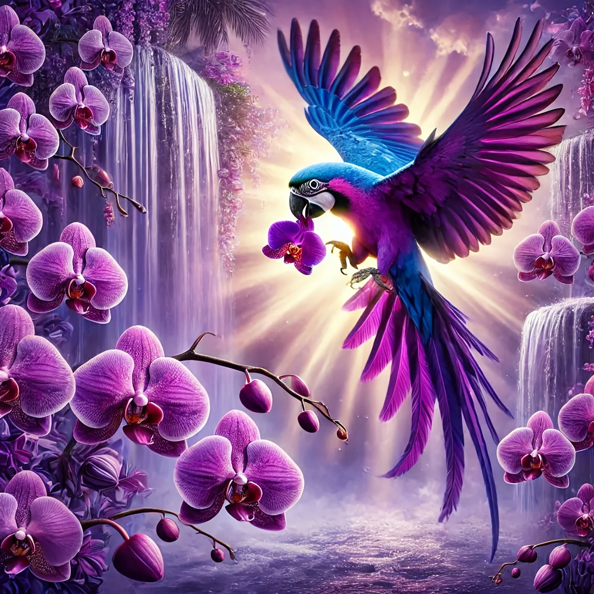 ZUOANLF 1set 40x40cm/15.7x15.7Inch DIY Cross Stitch Kit Frameless, Flowers and parrots, stamped cross stitch kits, Embroidery Set for Home Decor, Includes Patterned Fabric & Threads, Perfect for Living Room Entrance or Bedroo