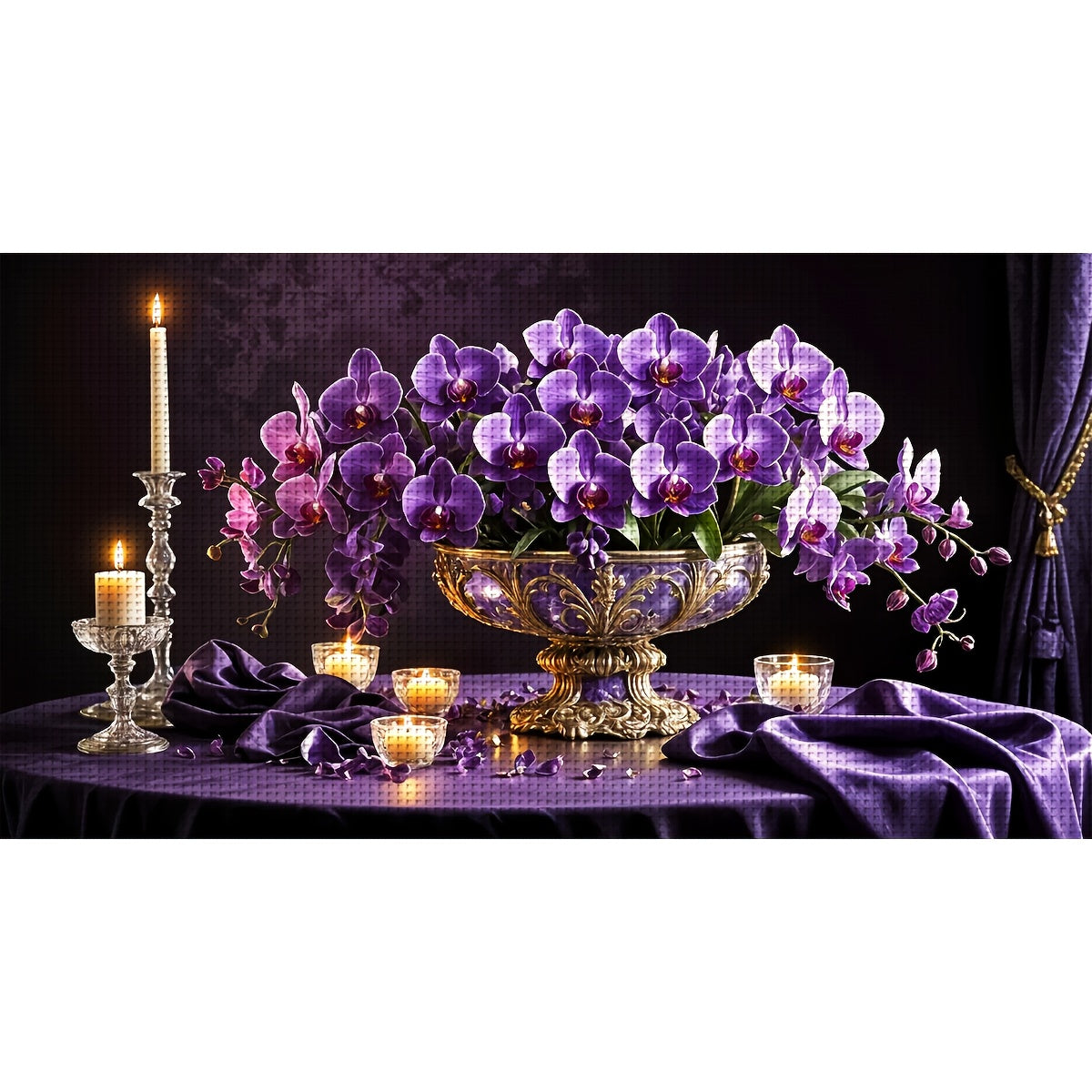 ZUOANLF 1set 40x70cm/15.7x27.6Inch DIY Cross Stitch Kit Frameless, Beautiful Phalaenopsis, stamped cross stitch kits, Embroidery Set for Home Decor, Includes Patterned Fabric & Threads, Perfect for Living Room Entrance or Bed