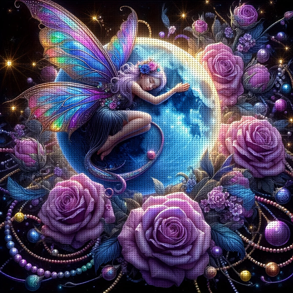 ZUOANLF 1set 50x50cm/19.7x19.7Inch DIY Cross Stitch Kit Frameless, Cute elf, stamped cross stitch kits, Embroidery Set for Home Decor, Includes Patterned Fabric & Threads, Perfect for Living Room Entrance or Bedroom Decoratio