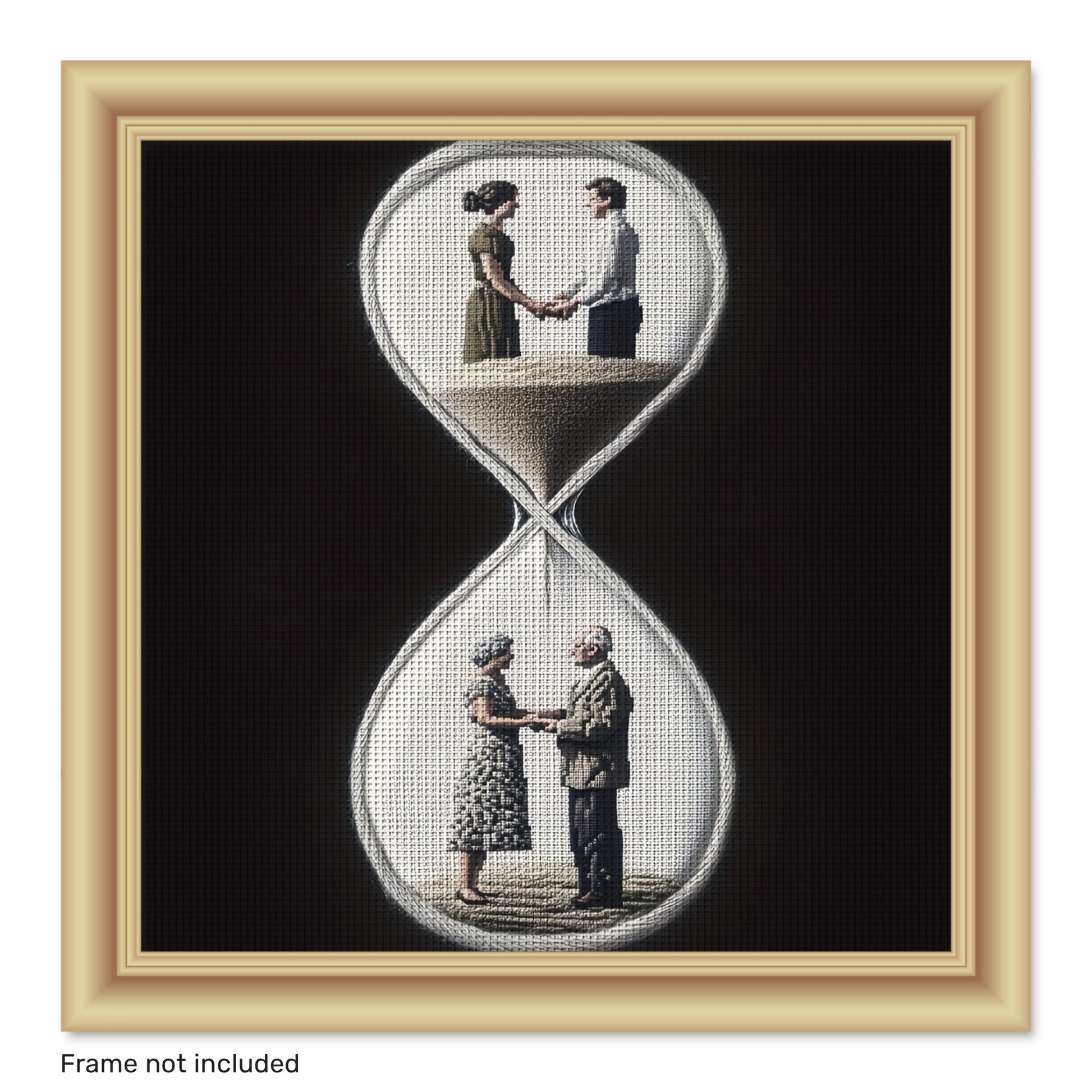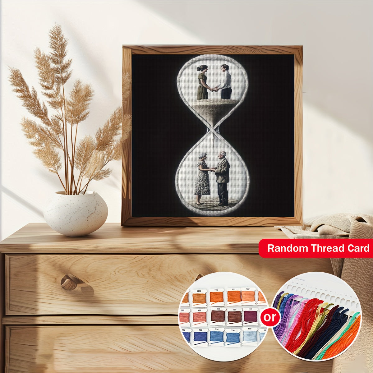 ZUOANLF DIY Cross Stitch Kit - Romantic Hourglass Love Scene, 30x30cm/11.8x11.8Inch, 40x40cm/15.7x15.7Inch, Fabric Wall Art with Threads, Needle, Pattern, and Instructions for Home Decor or Gift, All-Season Love Theme, Romant